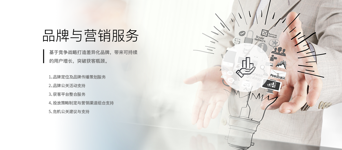 品牌与营销服务基于定位体系打造差异化品牌,带来可持续的用户增长,突破传统模式下的获客瓶颈。